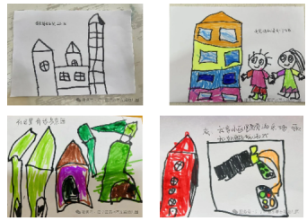 小朋友们互相分享着自己的发现,原来社区里不仅有我们的家,还有很多店铺与设施。