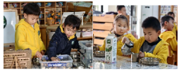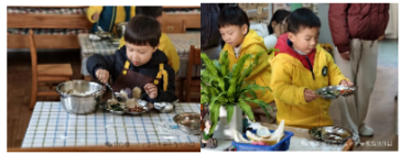 午餐时刻,孩子们自主取餐,进餐。整洁的桌面、香甜的饭菜,搭配着孩子们满足的小表情,构成了最温暖的画面。爸爸妈妈看到的是孩子的独立、自主的能力,同时也领悟到适度“放手”的重要性。