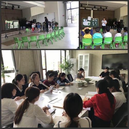 组员们共同观摩了由魏静柔老师和潘盼老师执教的《毛毛虫啃苹果》、和《蓬蓬头》教学活动。在教学活动中,教师们亲切大方,为孩子营造宽松,和谐的精神气氛,使孩子能够积极的参与音乐活动中。魏老师出示有趣的毛毛虫图片,化身扮演毛毛虫和幼儿一起学唱歌曲,潘老师的亲和力适合小班幼儿的年龄特点能够充分的培养孩子的倾听能力,提供的教具具有童趣,孩子们兴趣浓厚。课后,组员们在评课研讨中进行了思维碰撞,对活动的组织提出了各自独特的设想,大家对魏老师老师在教学过程中,注重情景创设的教学方式以及潘老师老师能够以角色的形式进入孩子的群体中,最后汤琳组长更是针对“音乐活动中的角色扮演”及“歌唱活动中注重幼儿主动学习的学习品质”进行了详细的讲解、举例。她在充分肯定此次活动的同时,更是对下次活动提出了更具体的要求。