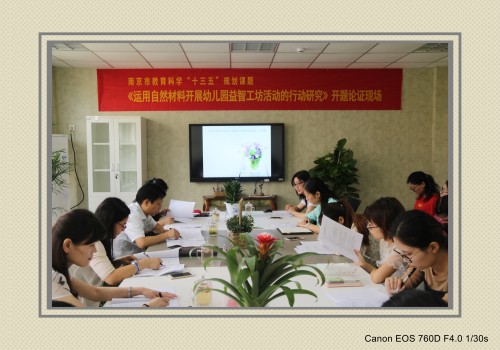 9月13日上午,清水亭东路幼儿园举行了南京市教育科学“十三五”规划立项课题《运用自然材料开展幼儿园益智工坊活动的行动研究》开题论证现场会。由南京市教科所邓大龙主任以及区教科室汪圣龙主任、张春珍老师、王蓉老师组成的专家组对本课题进行了现场开题论证,清水亭东路幼儿园课题核心组成员及部分一线教师现场仔细聆听了专家组的指导。