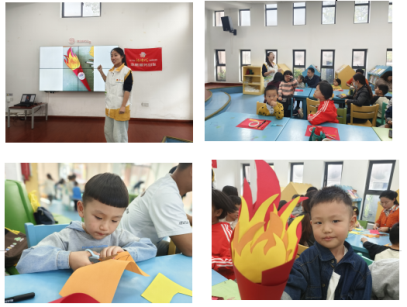 接下来刘秀秀老师与孩子们一起制作了亚运火炬。孩子们在了解了什么是亚运火炬之后,开始动手操作。“我的火焰要多亮一些”“我的火炬要做大一些”孩子们相互讨论,兴趣热烈。在一片充满欢声笑语的氛围中活动圆满结束,小朋友们度过了一段美好的亲子时光,也享受了阅读和制作手工的乐趣!