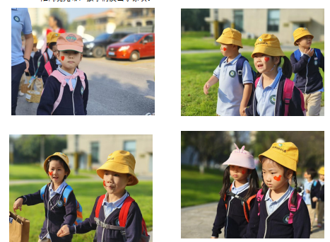 孩子们小手拉小手,互相加油打气,继续向前出发,没有任何一个小朋友掉队,也没有一个小朋友说放弃,就这样在小朋友一点点的坚持下,一步步的努力下,终于到达了终点,回到了我们的幼儿园!