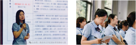 侯丽老师的分享,聚焦了保育老师的“大智慧”。“防飞溅水龙头的班级实践”、“自制微型防水板的投用实施”、“孩子汗湿衣物的清洗更换”,在保育老师们的智慧里,蕴藏着对于孩子的爱,也是对保教结合立心力行的专业坚守。
