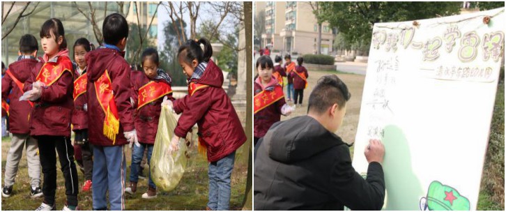 三月五日,各班老师通过图片、视频、歌曲、故事、做好事等形式帮助幼儿了解雷锋,知道雷锋叔叔是一位经常帮助别人、全心全意地为人民做好事的解放军叔叔,让小朋友们学习雷锋叔叔乐于助人、艰苦朴素的良好品质。下午,中班的小朋友听到起床铃声后,迅速起床来到小班帮助弟弟妹妹们穿衣服、穿鞋子。小班的弟弟妹妹们也不甘示弱,动起小手收拾玩具、帮助小朋友捋袖子等。三月六日,大班老师带着班级的部分孩子,兴高采烈地来到了幼儿园附近的恒大绿洲小区,开展“争做小雷锋”志愿者服务活动。大家共同拾起地上的树叶、纸屑等垃圾,还向来往的路人发放爱心卡,并发起遵守社会公德,保护公共环境的倡议 。留在园里的大班小朋友也拿起了小抹布,把大型玩具的角角落落都擦得干干净净。雷锋精神就像一粒小小的种子,埋在了每一个孩子的心中,悄悄的生根、发芽......